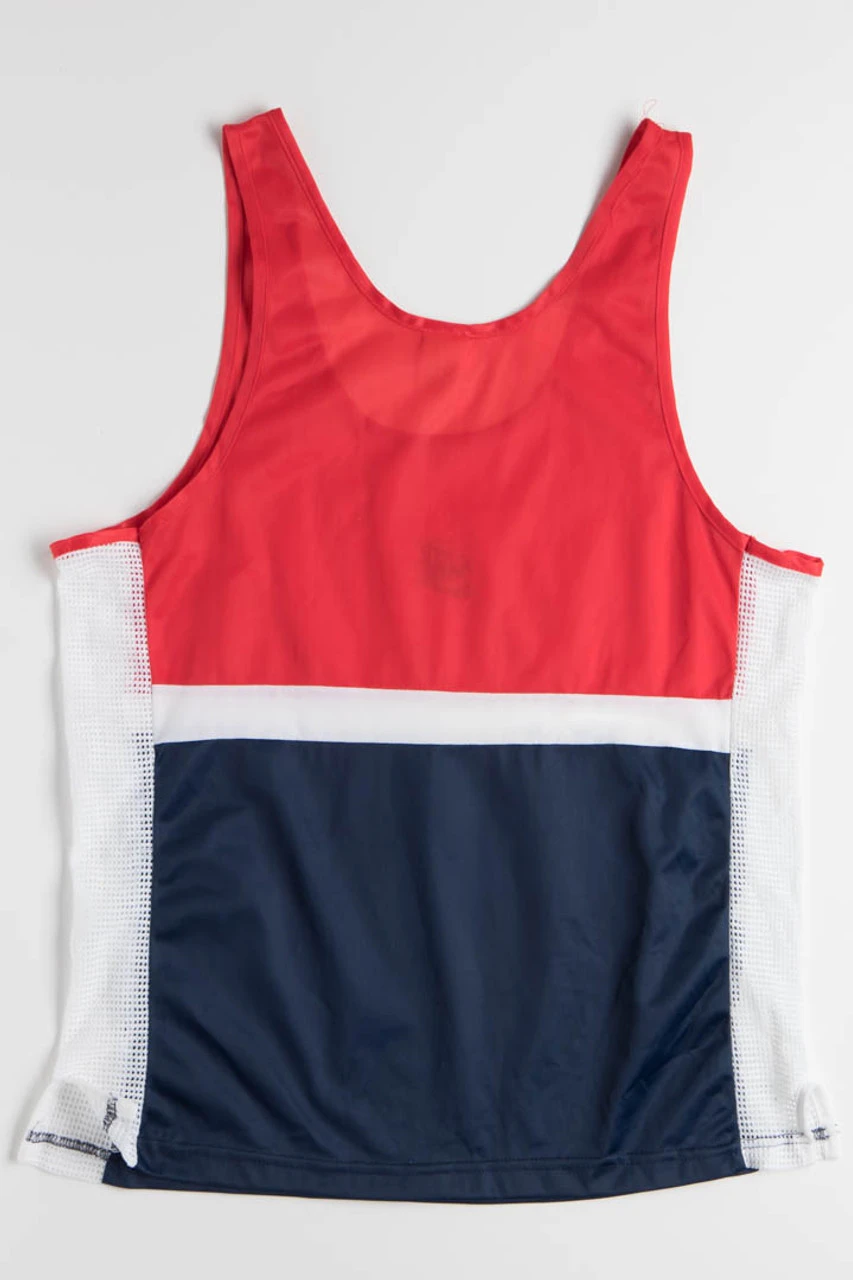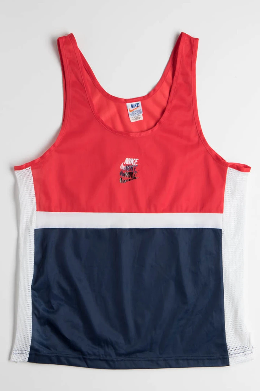 Vintage Nike mesh tank top. Size and condition notes: actual size listed on the tag is “Large”. The logo is pealing and there is a rip in the tag. Construction of tank is good and shows no wear.