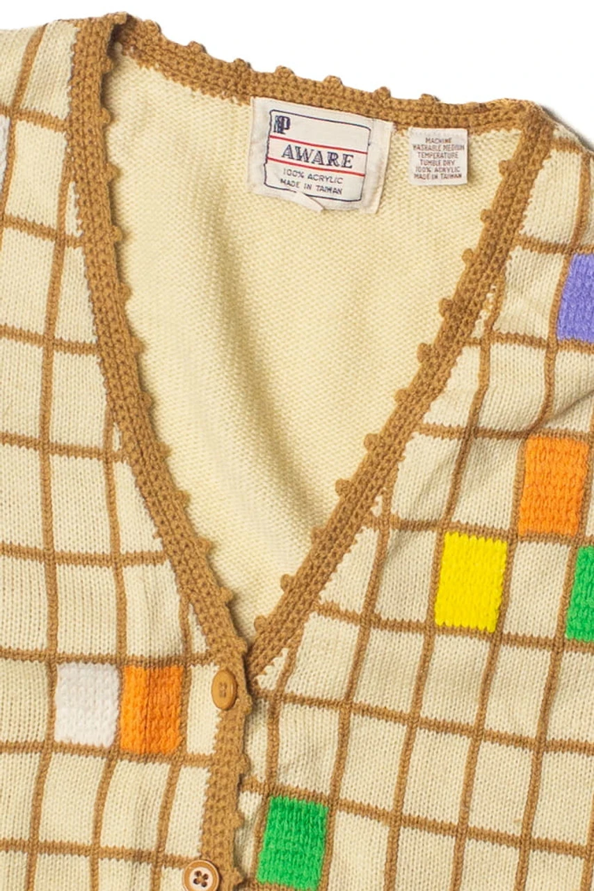 Vintage Knit Checker Pattern Vest